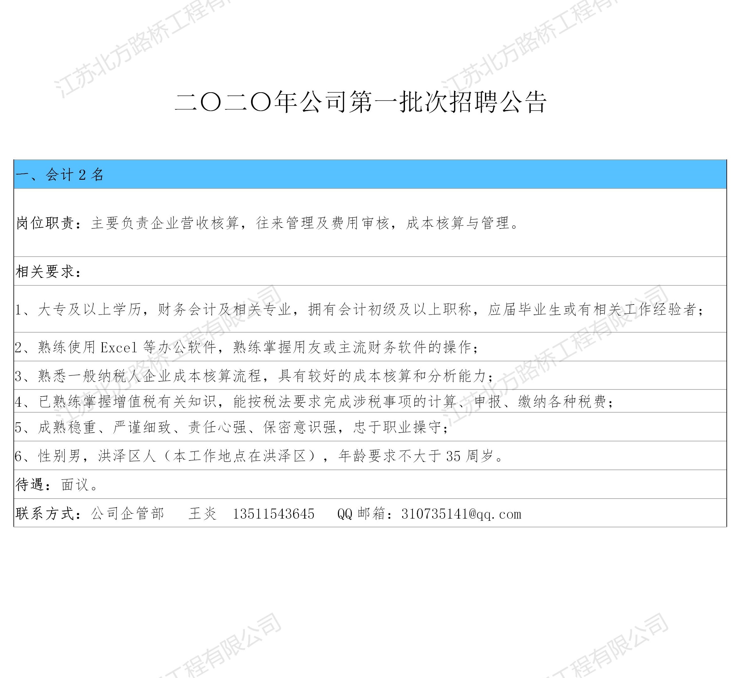 二零二零年第一批招聘信息公告