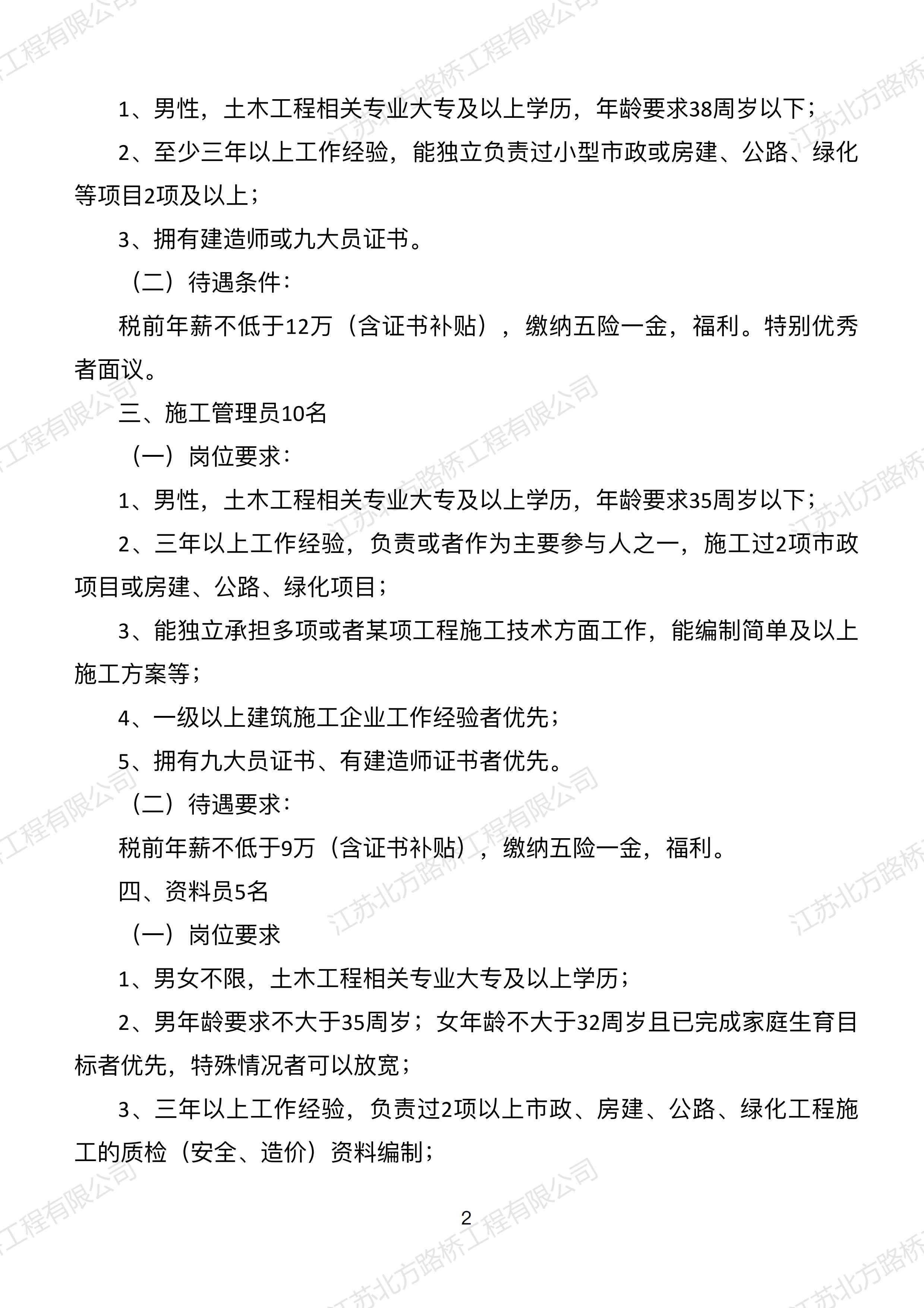 二零二一年第一次招聘计划