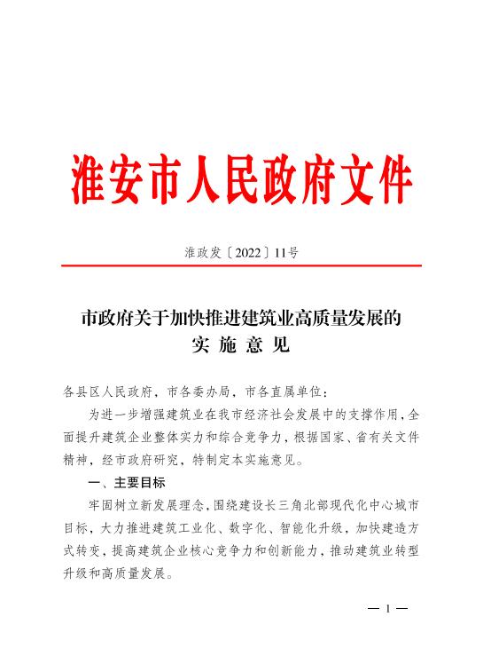 建筑业是我市支柱产业、富民产业之一。近年来,我市建筑业平稳发展,但仍存在本地企业市场占有率逐年降低、税源流失严重、核心竞争力不强等问题。2021年10月,市委陈书记对建设项目税源管理作出批示后,市住建局立即启动加快推进建筑业高质量发展、扶持建筑企业做大做强相关调研工作。根据上级有关文件精神,借鉴南京、无锡、盐城、泰州等兄弟城市经验,结合淮安实际,起草了《实施意见》。
