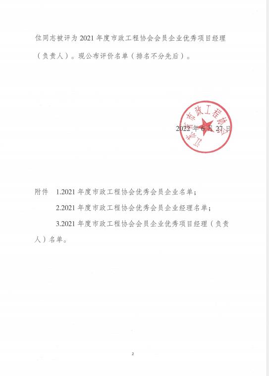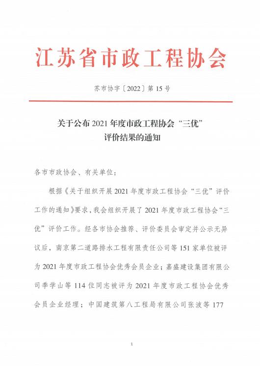 日前,由江苏省市政工程协会组织开展的2021年度市政工程协会“三优”评价工作顺利落下帷幕,经各市协会推荐、评价委员会审定并公示后,全省151家单位被评为“2021年度江苏省市政工程协会优秀会员企业”,淮安建筑施工单位仅有三家上榜。同时,我公司杨龙同志被评为“2021年度江苏省市政工程协会优秀会员企业经理”,王玉阵同志被评为“2021年度江苏省市政工程协会会员企业优秀项目经理(负责人)”。