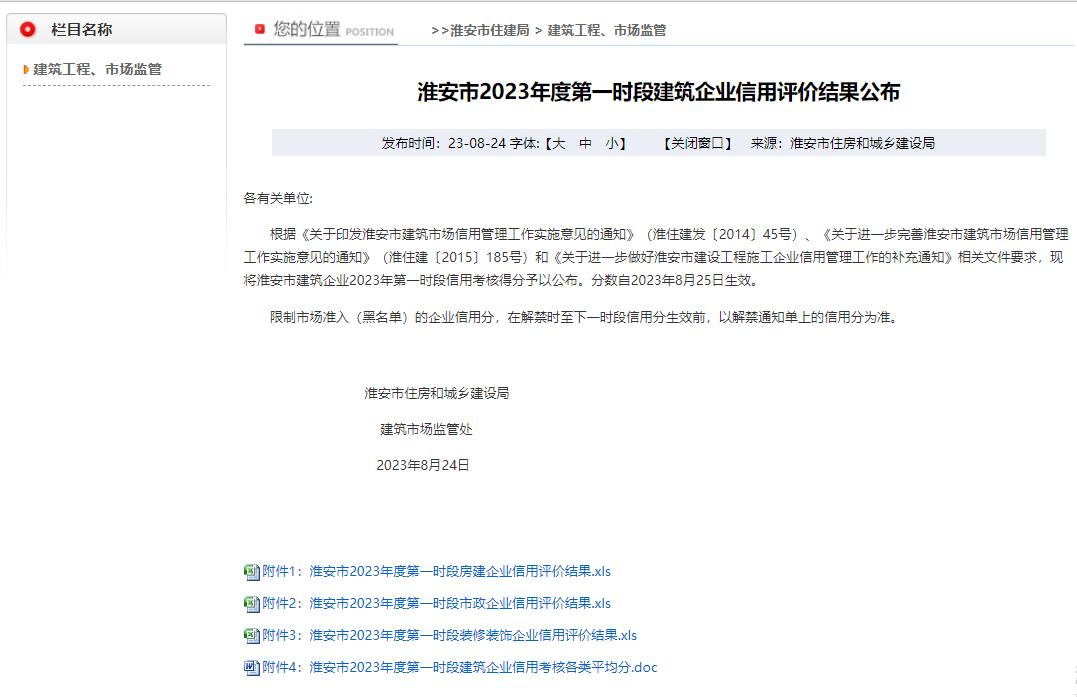 近日,淮安市住房和城乡建设局公布了2023年度第一时段建筑企业信用评价结果,北方路桥