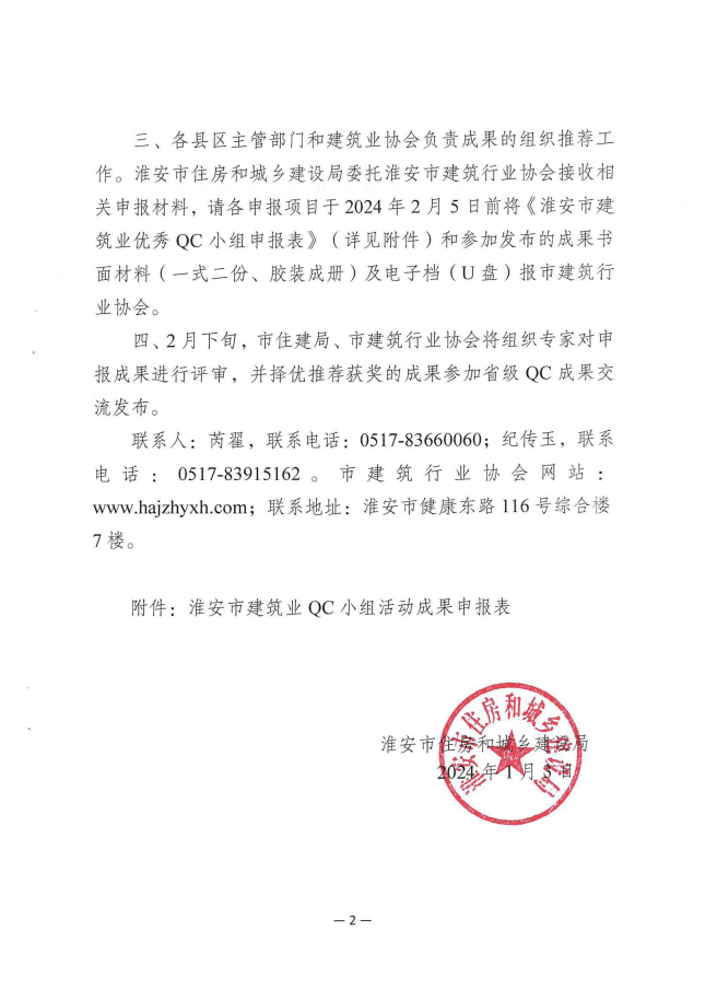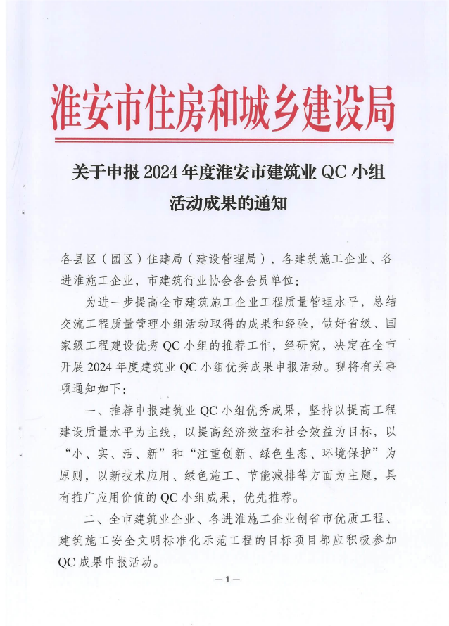 关于申请2024年度淮安市建筑业QC小组活动成果的通知