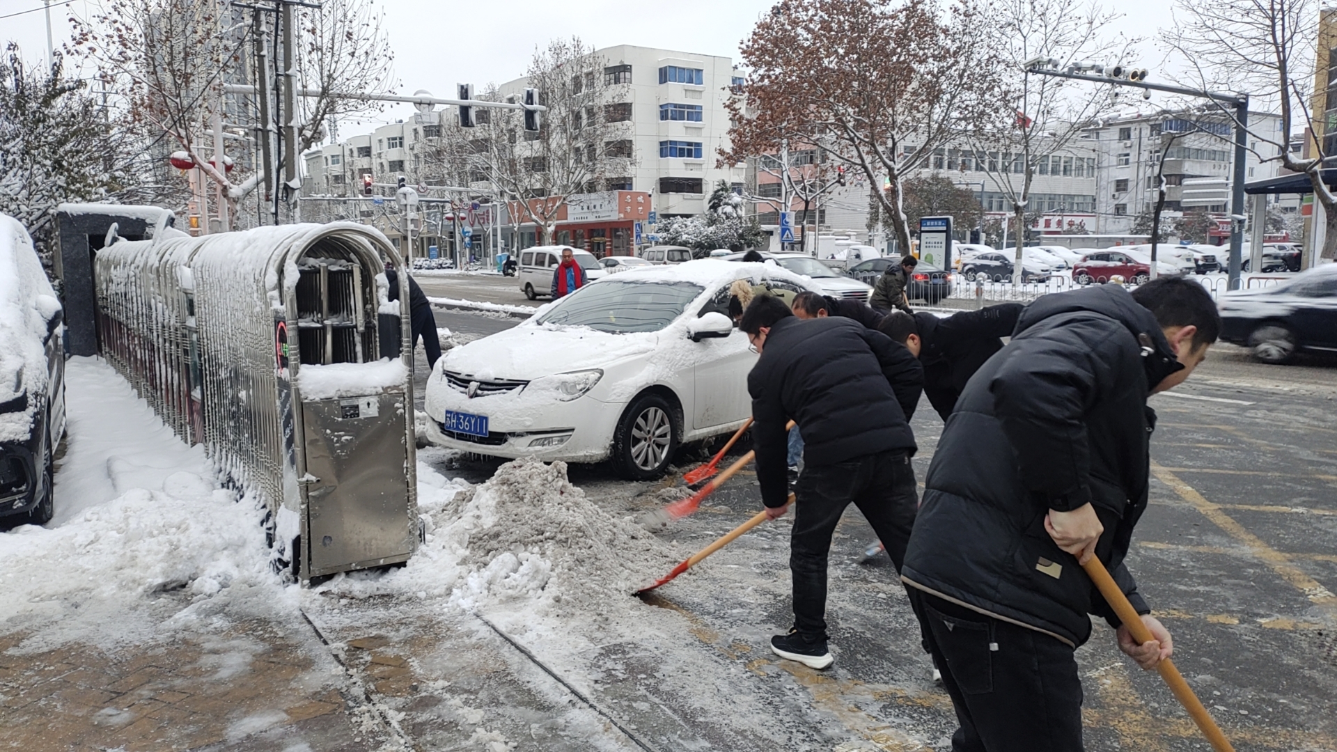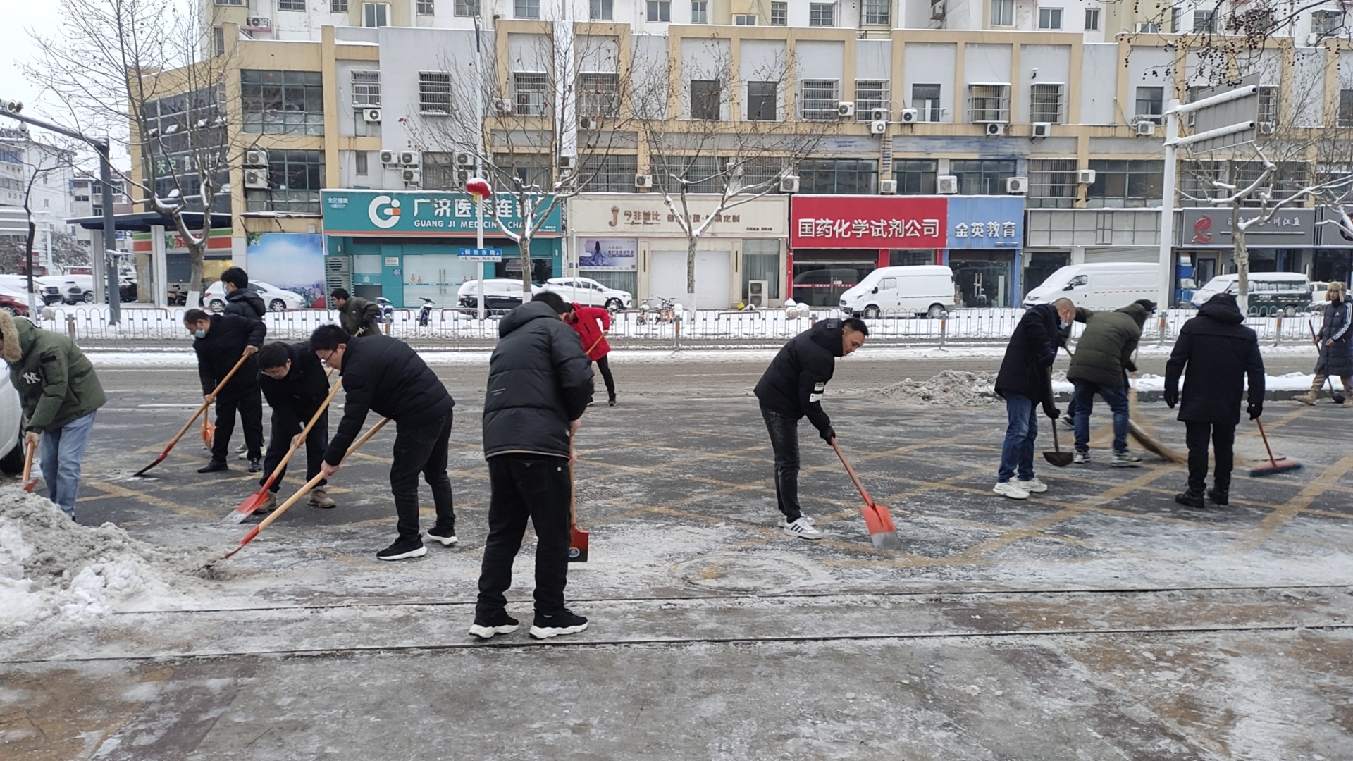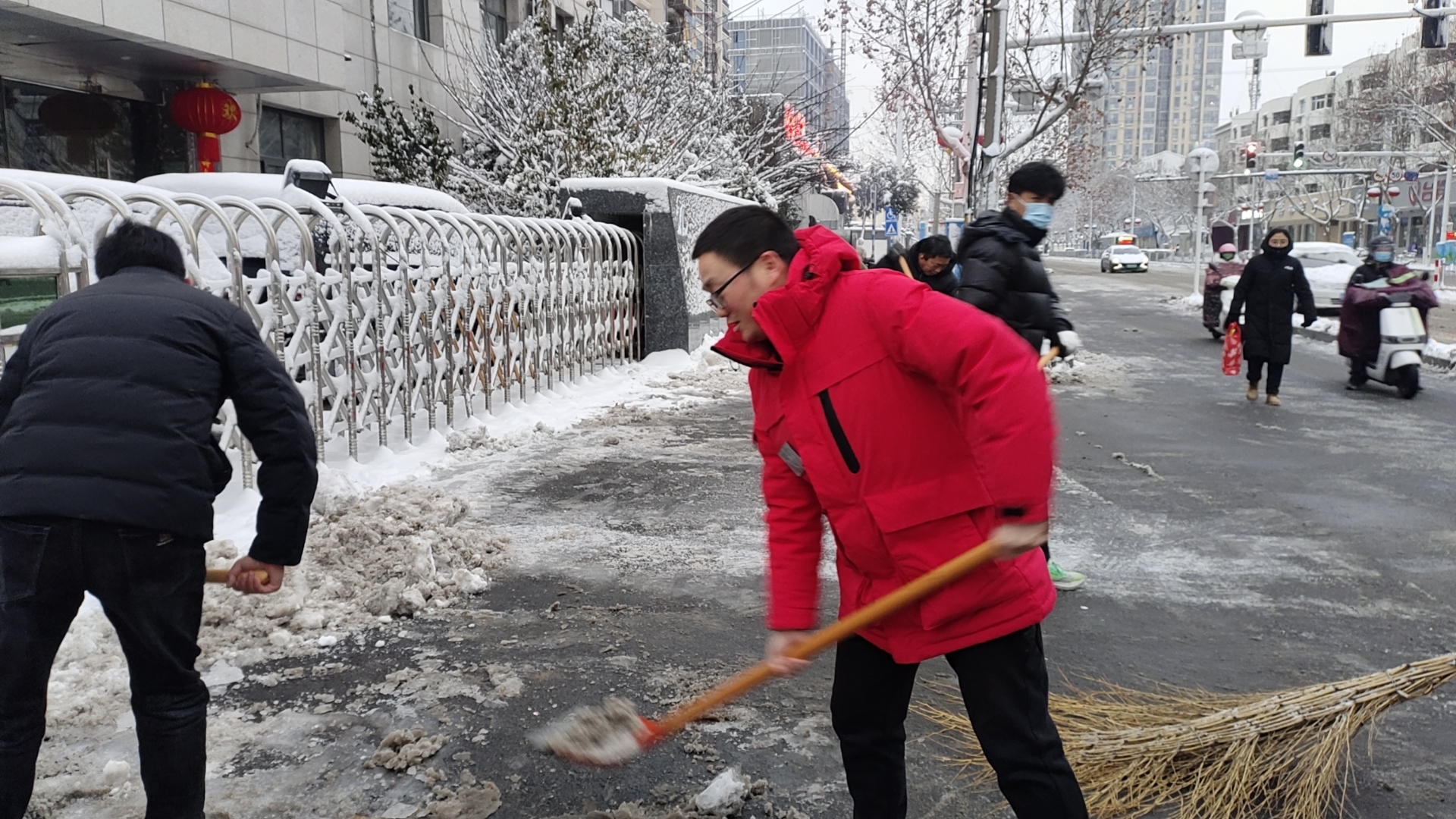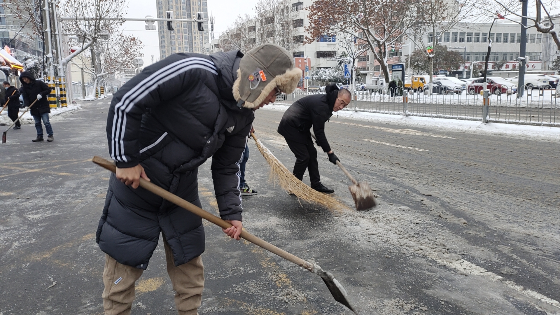 清晨,北方路桥青年突击队已奋战在解放东路上,他们不惧严寒,行动迅速,拿着铁锹、挥着扫帚等工具,以最快的速度清扫积雪,为群众出行开辟出一条“平安路、畅通路”。