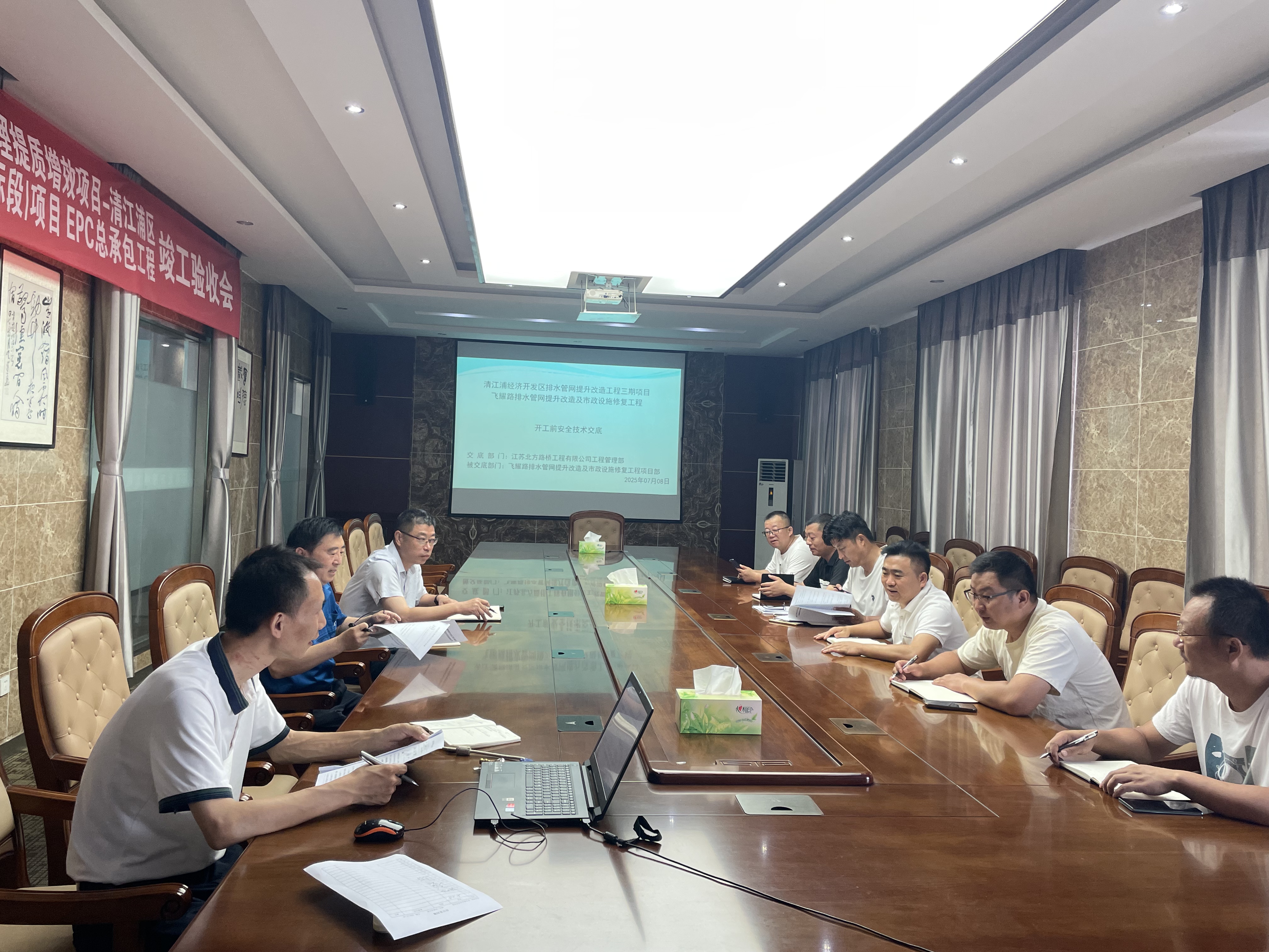 为确保飞耀路排水管网提升改造及市政设施修复工程顺利推进,7月8日上午,公司在四楼会议室组织召开开工前安全技术交底会。总工程师张成瑞同志、工程部经理刘昕阳同志出席了会议,并对项目实施中的安全技术要点进行了详细交底。