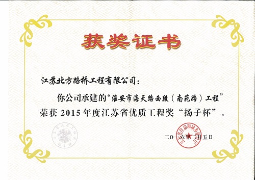 海天路西段(南苑路)工程2013年5月22日开工,于2014年11月8日竣工,一次性验收合格,并荣获2015年度江苏省优质工程奖“扬子杯”!!!